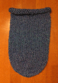 Note from Heather: I have a cousin due with a baby boy at the end of December. She wanted a bright blue cocoon. The photo doesn't show it but this Homespun yarn is bright blue. I followed the directions and was able to knit the cocoon with 1 skein!